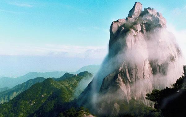 天柱山,亦稱“皖山”或“潛山”,在潛山縣城西北部,漢武帝曾封為南岳。主峰天柱峰,海拔1485米,石骨嶙峋,奇峭險(xiǎn)峻。四周有飛來峰、天獅峰、蓮花峰、觀音峰、黑虎峰等山峰,危崖羅列,怪石嵯峨;云海瀑布,幽深瑰麗。有三祖寺、馬祖庵、司元洞、渡仙橋、煉丹臺、石牛洞等勝跡。山中有“天柱云霧”名茶及瑞香木、魚鱗木等多種珍貴植物。為世界地質(zhì)公園、國家重點(diǎn)風(fēng)景名勝區(qū)。境內(nèi)的天柱山又名皖山、皖公山,因其主峰“一柱擎天”而得名。公元前106年漢武帝南巡時(shí)封其為“南岳”,后為隋文帝詔廢,故被人們尊為“古南岳”。景區(qū)內(nèi)“峰雄、石奇、洞幽、水秀”,兼有豐富的人文景觀,集北山之雄,南山之秀于一身,自然風(fēng)光雄奇靈秀,人文景觀博大精深,堪稱一幅幅絕妙的山水畫卷。1982年被國務(wù)院公布為全國首批44家國家級重點(diǎn)風(fēng)景區(qū)勝區(qū)之一,2011年5月5日批準(zhǔn)為安徽繼黃山、九華山之后,第三家“AAAAA”級旅游區(qū)、并獲得國家森林公園、國家地質(zhì)公園、中國自然和文化遺產(chǎn)地等稱號。