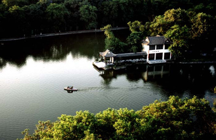 浮莊坐落在包河?xùn)|大島上。因其遠(yuǎn)觀如一片柳葉浮于水面之上,又因島上建筑類似古代村莊,故名浮莊。