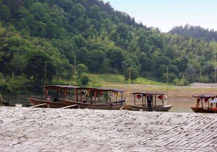 漁梁古壩位于城南1公里處的練江中,是新安江上游古代攔河壩,已有近1400年的歷史了。它橫截練江,使壩上水勢(shì)平坦,壩下激流奔騰。壩南端依龍井山,北端接漁梁古鎮(zhèn)老街。這條老街保存完好,是典型的徽派民居布局,窄窄的青石板路往河邊側(cè)有許多叉口,拾級(jí)而下,可下到漁梁壩。