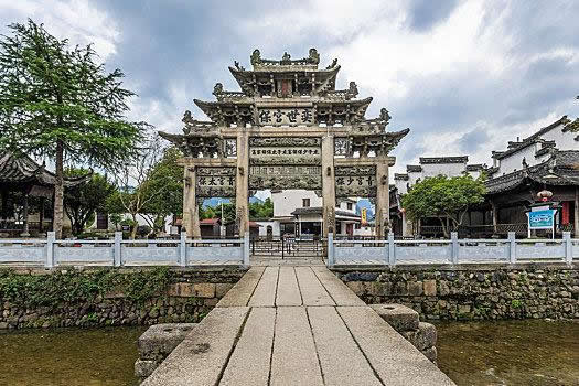 中國龍川,山水秀美,地靈人杰。東聳龍須山,西峙石笏山,天馬山南旋,登源河北來,龍川溪繞村東流,匯入登源河,形成村落水口;村如船形,有如龍舟出海,堪稱風(fēng)水寶地。景區(qū)內(nèi)水街兩岸,古民居鱗次櫛比,村巷幽幽,粉墻黛瓦,馬頭昂昂,一派徽州古村落意蘊。國家級重點文物單位胡氏宗祠、奕世尚書坊和徽商胡炳衡宅,更是徽派三雕精品中的精品。胡氏宗祠享譽“木雕藝術(shù)殿堂”、“江南第一古祠”,其內(nèi)保存的木雕“四和圖”(和諧、和順、和美、和鳴)成為和諧社會的象征;奕世尚書坊是盛明時期的石牌坊,成為徽派石雕的典型代表;徽商胡炳衡宅(未開放)則原汁原味地保存了徽州古民居舊貌,忠實記錄了一代茶商的歷史。