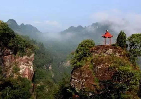 仙人花轎:紅色丹霞巖層,經長期的雨侵風蝕,自然形成獨立而方正的山體景觀。