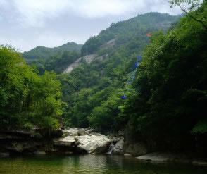 從羅田天堂寨風(fēng)景區(qū)管理處向南沿河步行200m即可到達(dá)。神仙谷全長約2500m,該谷由龍井河、蕭家河兩條溪流匯集而成,河谷寬約30-40m。