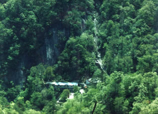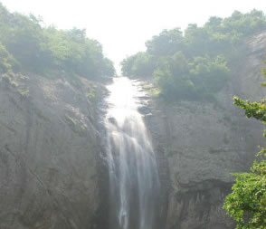 天堂寨森林公園的水景主要表現(xiàn)在瀑布與溪水潭池上,其中尤以一號瀑布、三號瀑布、龍井河溪為最。一號瀑布(九影瀑布):瀑布高掛,落差71米,水簾幅寬8米,瀑布下有深潭,潭面30平方米。三號瀑布(瀉玉瀑布)垂直高度62米,水簾寬11—13米,瀑巖呈淡紫色,略傾斜且?guī)r面凸凹參差不齊。