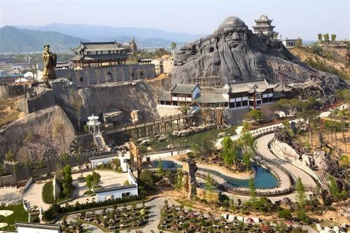 五千年文博園為了弘揚道教文化,重金塑造老子像,是目前世界上最大、最高的老子像,高35米,形象設(shè)計為兩手臂張開,長為185米,雙目微閉像是在沉思、輪廓鮮明、從容慈祥、高大挺拔,不僅從形象創(chuàng)意和藝術(shù)處理上都透露出圣人的智慧和雄偉氣勢,生動再現(xiàn)了老子一生為了弘揚和發(fā)展自己的思想,不畏艱辛,探索治國安邦的豪情壯志,給后人留下了不朽的思想和精神,與其上雕刻的“老子天下第一”相應(yīng)。