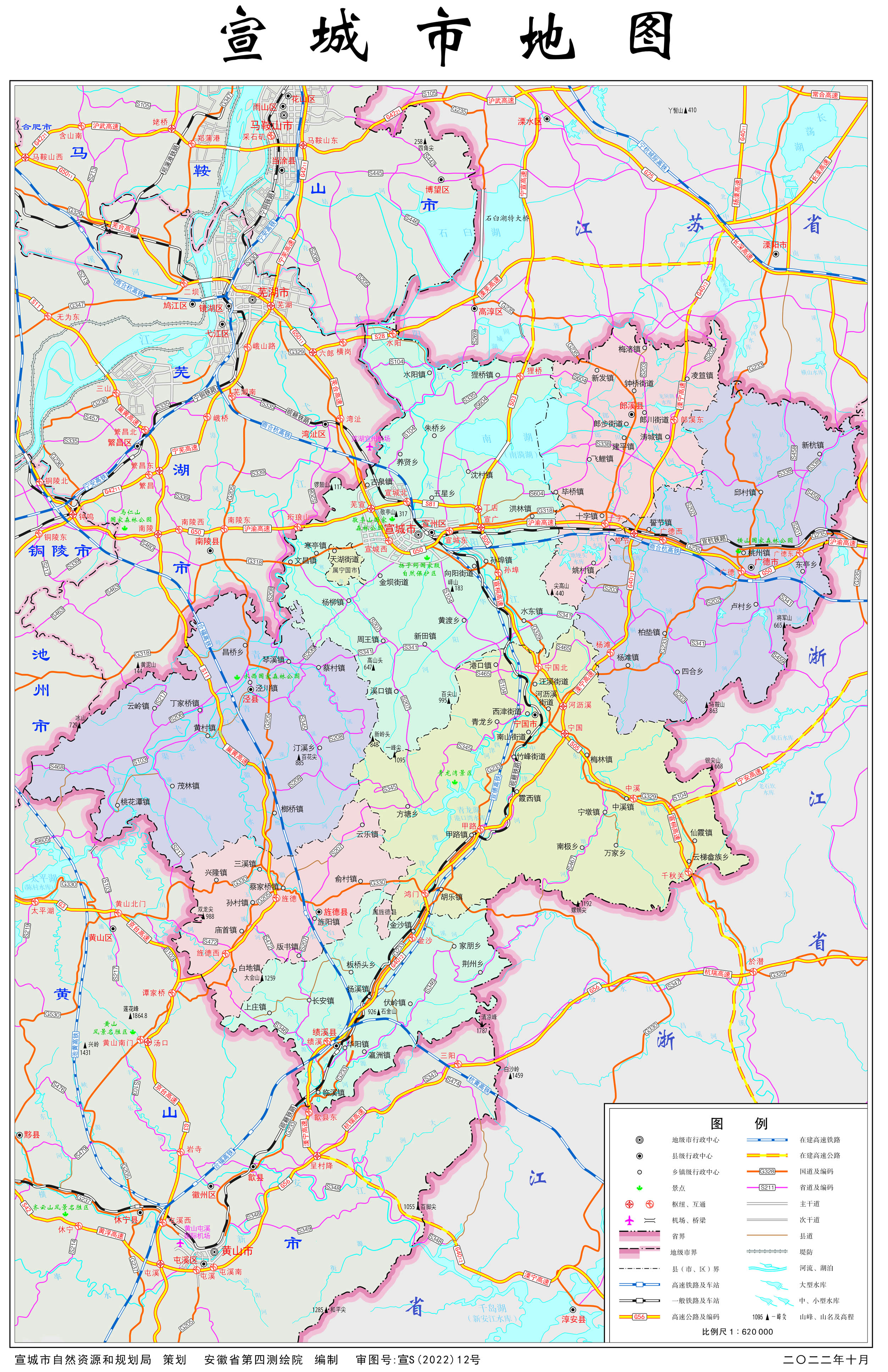 宣城市轄1個(gè)市轄區(qū)、4個(gè)縣,代管2個(gè)縣級(jí)市: