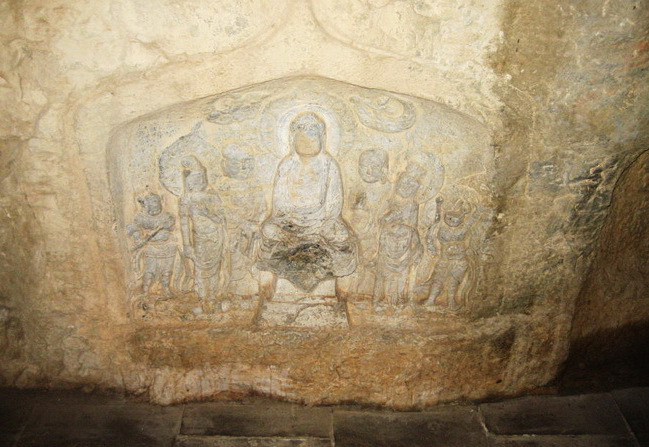 唐代摩崖造像 唐代摩崖造像位于張坊鎮(zhèn)大峪溝村東北,為房山區(qū)重點保護(hù)文物單位。造像在高3米、寬4米的青石斷面上,共有有摩崖造像2龕。左側(cè)一龕高0.88米,寬0.98米,中為佛祖釋迦牟尼坐像,兩側(cè)列眾弟子和金剛力士,頂部有二飛天,共有造像9尊,龕內(nèi)兩側(cè)有題記,左為“照一天下八月二十四日佛放光日豪護(hù)佛神王”,右為“護(hù)法力士”。右側(cè)一龕高1.7米,寬0.85米,龕內(nèi)只有一尊釋迦牟尼像端坐于須彌座上,佛祖面方口闊,雙目微睜,兩耳垂肩,衣衫寬松,左臂下垂,右手平置,雙腿垂下,足踐蓮花。石刻造像線條流暢,技法嫻熟。