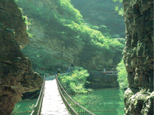 棧道:京東大峽谷以五潭稱奇,然而跨四潭的棧道也稱標(biāo)新立異,各不相同,成為大峽谷的又一奇觀,一、二棧道依崖而成,似長龍臥坡,四潭棧道由數(shù)十根鋼索相連而成,攀崖而上,跨潭而過,似臥頂長虹,走在上面搖搖晃晃,險(xiǎn)象橫生,難免不讓人想起紅軍強(qiáng)渡“大渡河”、勇過鐵索橋的壯舉,游客們身臨其境,其感覺自當(dāng)終生難忘。