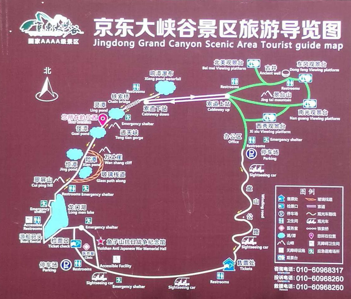 京東大峽谷是是集高山、峽谷、湖面、深潭為一體的綜合型自然風(fēng)景區(qū)。位于平谷城區(qū)東北的山東莊鎮(zhèn)魚子山民俗旅游村,距市區(qū)(東直門)80公里。 景區(qū)擁有廣闊的湖面、各異的深潭、蔥翠的山野,還有連接大峽谷和井臺(tái)山的落差長達(dá)千米的高空索道。 京東大峽谷景區(qū)適游期長,景區(qū)四季景致不同,春時(shí)山花爛漫,百鳥鳴囀;夏時(shí)清風(fēng)和煦,爽利暢懷;秋時(shí)萬山紅遍,層林盡染;冬時(shí)冰瀑高懸,銀裝素裹。四季所見所聞所感迥然不同,又各得佳妙,是平谷地區(qū)少見的適宜四季游覽的景區(qū)之一,也是北京地區(qū)少數(shù)適宜冬季觀光的景區(qū)之一。 “空中王子”阿迪力曾在大峽谷景區(qū)上空做“高空鋼絲生存表演”,該表演持續(xù)三天,引起了巨大轟動(dòng)。表演結(jié)束后,表演所用的鋼絲、保險(xiǎn)繩等設(shè)備仍留在景區(qū),景區(qū)利用這些設(shè)備并加以改進(jìn),增加了安全系數(shù),形成了高空走鋼絲項(xiàng)目。既可鍛煉膽識(shí),又可增強(qiáng)自信,不失為一個(gè)勇敢者的游戲。