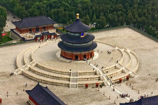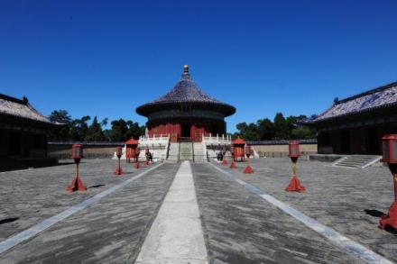 天壇公園設(shè)計考究,從選位、規(guī)劃、建筑設(shè)計等方面均依據(jù)中國古代《周易》中的陰陽、五行等學說,體現(xiàn)出了中國古人對“天”的認識。無論在整體布局還是單一建筑上,天壇公園里的建筑都反映出了天地之間的關(guān)系,而這一關(guān)系在中國古代宇宙觀中占據(jù)著核心位置。同時,天壇公園內(nèi)的建筑還體現(xiàn)出中國古代帝王將相在天地關(guān)系中所起的作用。