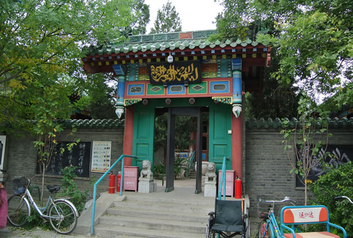 張家灣清真寺 張家灣清真寺,位于張家灣鎮(zhèn)西街。中軸線上主體建筑禮拜殿,勾連搭四卷,硬山簡瓦,規(guī)模較大。一三兩卷為箍頭脊,二卷為調(diào)大脊,大吻壯觀,小獸玲瓏。第四卷明間為窯殿,四角攢尖,綠琉璃寶頂高聳天空,次間則為卷棚頂,別具一格。博古彩畫精美,西頭磚雕別致,嵌山方圓木窗活潑,井口天花鮮艷整潔,南北配殿與禮拜殿之間有海棠柱曲廊相連。結(jié)構(gòu)嚴(yán)謹(jǐn),錯(cuò)落有致。 |