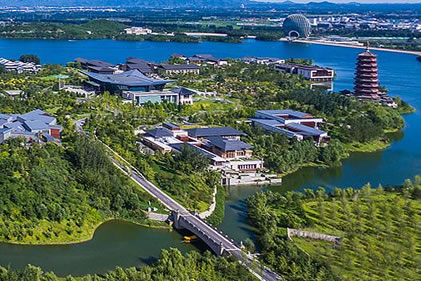 主要建筑包括雁棲湖國(guó)際會(huì)議中心,及一批供會(huì)議領(lǐng)導(dǎo)人住宿休息的別墅。