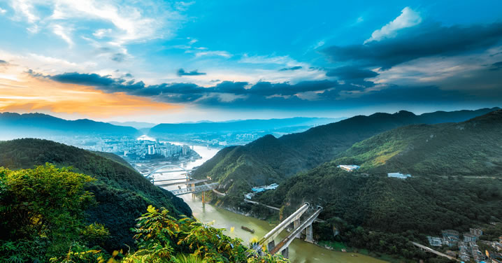 向南流經(jīng)陜西陽(yáng)平關(guān)、四川廣元市,在昭化右納白龍江,向南流經(jīng)蒼溪、閬中、南部、蓬安、南充、武勝入合川,納渠江、涪江再向南流經(jīng)草街航電樞紐入北碚區(qū)境內(nèi),橫截華鎣山南段三支脈,形成壯麗的嘉陵江小三峽,即聞名遐邇的瀝鼻峽、溫塘峽、觀音峽。北碚區(qū)幅員屬嘉陵江流域,面積為735.2平方千米,境內(nèi)長(zhǎng)45.1千米。嘉陵江多年平均流量2212立方米/秒。