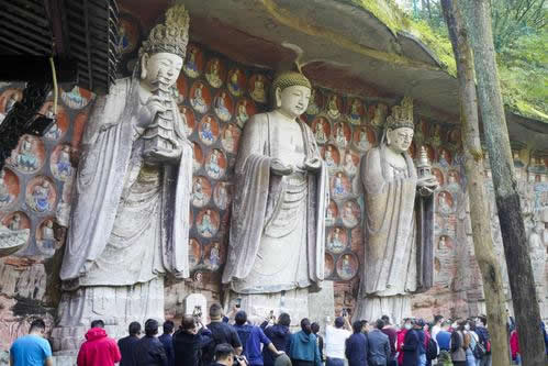 大足石刻位于重慶市大足區(qū)境內(nèi),是唐、五代、宋時(shí)所鑿造,明、清兩代亦續(xù)有開鑿,F(xiàn)為世界文化遺產(chǎn),世界八大石窟之一。