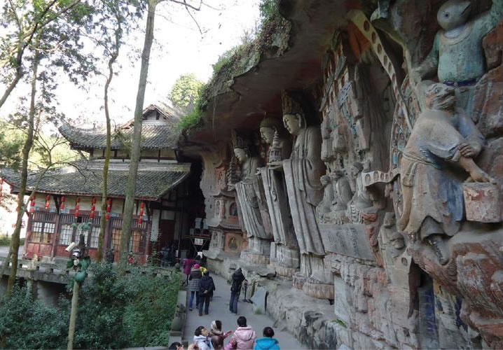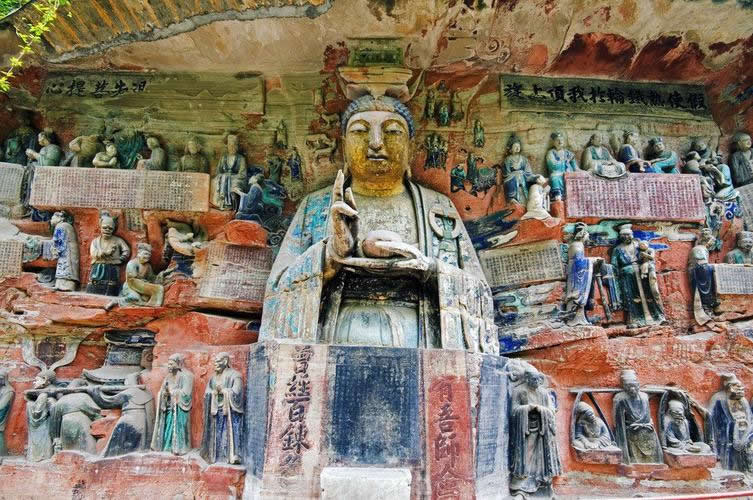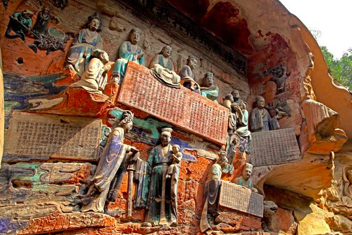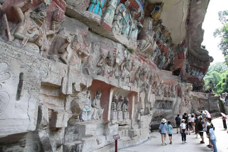 重慶市的大足石刻以其規(guī)模宏大、雕刻精美、題材多樣、內(nèi)涵豐富和保存完整而著稱于世。它集中國(guó)佛教、道教、儒家“三教”造像藝術(shù)的精華,以鮮明的民族化和生活化特色,成為中國(guó)石窟藝術(shù)中一顆璀璨的明珠。它以大量的實(shí)物形象和文字史料,從不同側(cè)面展示了九世紀(jì)末至十三世紀(jì)中葉中國(guó)石刻藝術(shù)的風(fēng)格和民間宗教信仰的發(fā)展變化,對(duì)中國(guó)石刻藝術(shù)的創(chuàng)新與發(fā)展做出了重要貢獻(xiàn),具有前代石窟不可替代的歷史、藝術(shù)和科學(xué)價(jià)值。許多歐洲人、尤其是法國(guó)人,對(duì)大足石刻寵愛倍加。