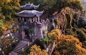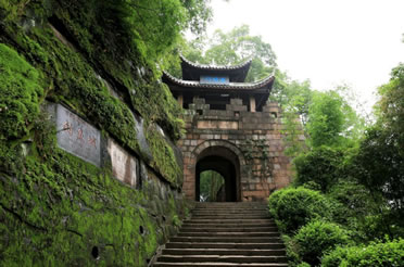 護(hù)國(guó)門重慶十大標(biāo)志性旅游景觀之一。護(hù)國(guó)門為釣魚城的標(biāo)志性建筑,位于城南第二道防線上,在釣魚城題刻的右側(cè)上部。在釣魚城8座城門中,護(hù)國(guó)門是規(guī)模最大的一道雄關(guān),城門洞高3.24米,寬2.45米,進(jìn)深6.42米。城臺(tái)上為重檐歇山頂式城樓,高7米。其樓北倚峭壁,南臨懸崖,旁有古榕交柯,蔚為壯觀。當(dāng)年,釣魚城軍民曾在護(hù)國(guó)門前面的峭壁上開鑿石穴,架梁鋪木,施以棧道出入。情況緊急之時(shí),可迅速地將橫梁上的木板抽掉,使其通道斷絕,猶如我國(guó)北方古城的城門吊橋。如今,棧道石穴猶存。在護(hù)國(guó)門平頂門道南壁和后門洞東側(cè),還保留有宋代的城門構(gòu)件和登城的石級(jí)。