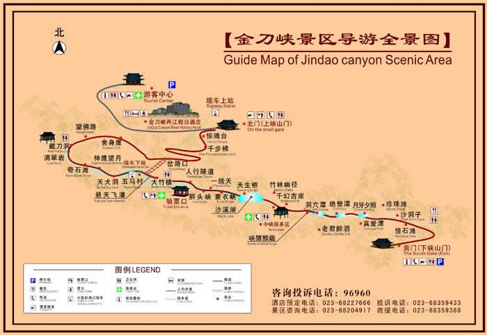 金刀峽地勢雄偉,以峽著險(xiǎn),以林見秀,以巖稱奇,以水顯幽。金刀峽長約10公里,分上下兩段。上段由于喀斯特地質(zhì)作用,地面切割強(qiáng)烈,金刀神功般形成了獨(dú)特的峽谷幽壑,石壁如削,兩山岈合,垂直高度超過百米,上有古藤倒掛,下有潺潺流水;下段由于流水侵蝕的作用,有洞穴群提高潭潭相連,飛泉瀑布層層疊疊,古鐘乳、石筍、石柱更是千姿百態(tài),堪稱全國最長的峽谷十里仿古木棧道,讓人驚嘆不已。憑棧探幽,可感悟那蘊(yùn)藏于大自然山水的天地靈氣。十公里風(fēng)景線以雄、險(xiǎn)、奇、幽著稱,集瀑、泉、洞、峽于一體。有驚魂臺(tái)、藏刀洞、懸天飛瀑、天犬洞、神鷹峽、獅頭峽、一線天、沙溪湖、中峽天然浴場、千幻古巖、彌樂佛、心形潭等四十多個(gè)景點(diǎn)可供游客探險(xiǎn)、攀登和水上游樂,是人們度假避暑、踏青、回歸自然的旅游佳境,被游客譽(yù)為“夢中的香格里拉”、“中國第一險(xiǎn)峽”。