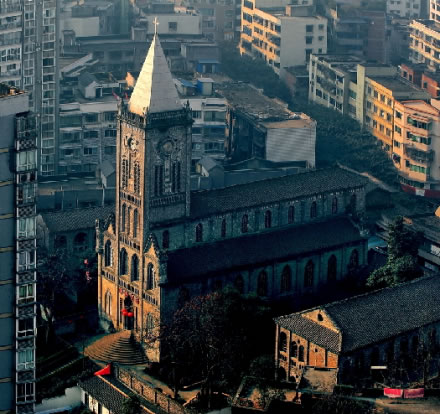 重慶市榮昌區(qū)天主教堂建成于1915年,是利用“余棟臣教案”的賠款修建。教堂位于榮昌縣城后西街,主體為哥特式建筑風(fēng)格,由圣堂主體樓、神父樓和教會(huì)學(xué)校三部分組成,后多遭破壞、占用,現(xiàn)存約四分之一。重慶榮昌縣天主教堂解放后被征用,1980年恢復(fù)宗教活動(dòng),F(xiàn)為省級(jí)文物保護(hù)單位,電影《1942》曾在此取景。該教堂于1915年由法國(guó)人設(shè)計(jì)并修建,主體建筑為歌特式建筑,是西南地區(qū)最大且保存最完整的教堂。