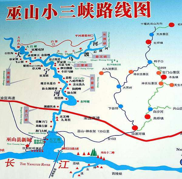 巫山小三峽·小小三峽景區(qū)全長65千米。有水峽景觀、峰巖景觀、洞穴景觀、動植物景觀、人文景觀、空間景觀。其中水體景觀包括水、泉、溪、潭、灘、簾瀑、卵石等多種類型,峰巖景觀包括峭壁、山峰、奇石、圖案、肌理、色彩等多種類型,洞穴景觀包括發(fā)育程度各異、大小各異、高度各異、風格各異的眾多喀斯特溶洞、地下河。