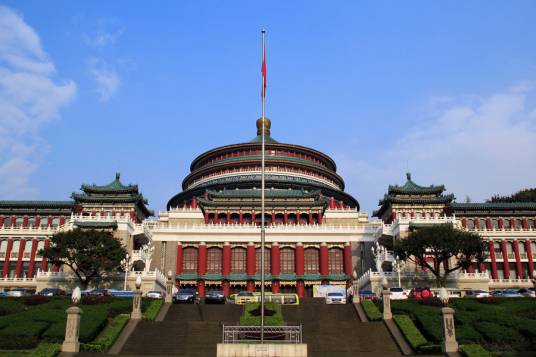 重慶市人民大禮堂,位于重慶市渝中區(qū)人民路173號,于1951年6月破土興建,1954年4月竣工,是一座仿古民族建筑群,是重慶十大文化符號,是中國傳統(tǒng)宮殿建筑風格與西方建筑的大跨度結(jié)構(gòu)巧妙結(jié)合的杰作,也是重慶的標志建筑物之一。