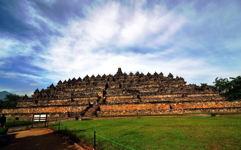 婆羅浮屠寺廟群 婆羅浮屠位于東南亞的印度尼西亞,大約建于公元750年至850年間,由當時統(tǒng)治爪哇島的夏連特拉王朝統(tǒng)治者興建。“婆羅浮屠”這個名字的意思很可能來自梵語"Vihara Buddha Ur",意思就是“山頂的佛寺”。婆羅浮屠大約建于九世紀,公元1006年因火山噴發(fā)而被埋入地下。直到806年后的1812年被英國人萊佛士發(fā)現,婆羅浮屠得以重見天日。與中國的長城、印度的泰姬陵、柬埔寨的吳哥窟并稱為古代東方四大奇跡。 婆羅浮屠是作為一整座大佛塔建造的,從上往下看它就像佛教金剛乘中的一座曼荼羅,同時代表著佛教的大千世界和心靈深處。整個建筑分為三層,基座是五個同心方臺,呈角錐體;中間是三個環(huán)形平臺,呈圓錐體;頂端是佛塔。四周圍墻和欄桿飾以淺浮雕,總面積2500平方米;圍繞著環(huán)形平臺有72座透雕細工的印度塔,內有佛龕,每個佛龕供奉一尊佛像。婆羅浮屠寺廟群在聯合國的援助下于1970年得以重建,現已經成為印度尼西亞最著名的景點之一。