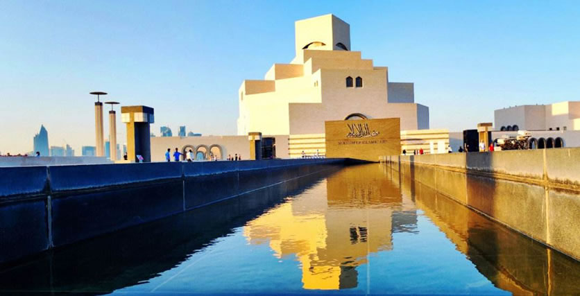 伊斯蘭藝術(shù)博物館 多哈伊斯蘭藝術(shù)博物館位于卡塔爾首都多哈海岸線之外的人工島上﹐占地4.5萬平方米,是迄今為止最全面的以伊斯蘭藝術(shù)為主題的博物館。博物館外墻用白色石灰石堆疊而成,折射在蔚藍的海面上,形成一種懾人的宏偉力量。而再看建筑的細部,典型的伊斯蘭風(fēng)格幾何圖案和阿拉伯傳統(tǒng)拱形窗,又為這座龐然大物增添幾分柔和,稍稍中和了它的英武之氣。博物館中庭偌大的銀色穹頂之下,150英尺高的玻璃幕墻裝飾四壁,人們可以透過它望見碧海金沙。