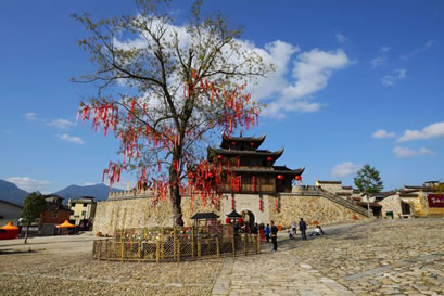 這里有近200間青磚琉瓦、雕梁畫棟、氣派非凡的明清時代豪華民宅,一條長達(dá)半公里的青石板土街和數(shù)10條卵石鋪砌的古巷道;這里的和平書院曾培育出133位進士,還有黃氏峭公墓、聚奎塔、光源寺以及20余處人類生活遺址。