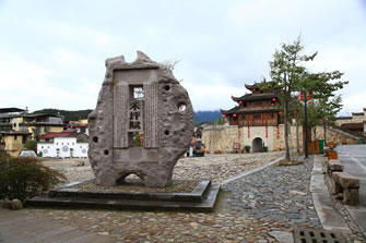 和平古鎮(zhèn)現(xiàn)存東北兩座譙樓。東門譙樓是三重檐歇山式,而其他三座譙均是兩重檐的。東門譙樓,門洞用石條砌成,墻體用大塊的卵石筑成。城墻腳下的這塊“禁止搬運、保固地方”的石頭,是和平“舊市三禁碑”之一,為清代設(shè)立。由于當(dāng)時社會地主少、農(nóng)民多,農(nóng)民每次把收成的大部分上交給地主,在青黃不接的時候,糧價上漲,地主就把大部分的糧食外運到邵武城關(guān)或福州,造成產(chǎn)糧地變?yōu)槿奔Z地,農(nóng)民面臨饑餓的威脅,因而設(shè)此碑,并輪流放哨,規(guī)定所有私自外運的糧食都必須沒收或低價收購,因而它起到維護當(dāng)時的糧食市場的作用。北門譙樓,當(dāng)?shù)厝朔Q“武陽樓”,因它對面的山叫武陽山,清同治年間翻修過。城門的門洞用條石砌成,比東門門洞高大。城門兩邊各保留了一段用鵝卵石筑成的明城墻,鵝卵石上長滿青苔,漫漶的縫隙間長著青青野草,四季皆有野花開放,充滿了詩情畫意。風(fēng)雨譙樓,見證百年夕陽煙雨;古樸城門,迎送多少古鎮(zhèn)喜憂。譙樓走過的是悠悠歲月,形容雖然殘破斑駁,留下的卻是耐人尋味的古鎮(zhèn)歷史。