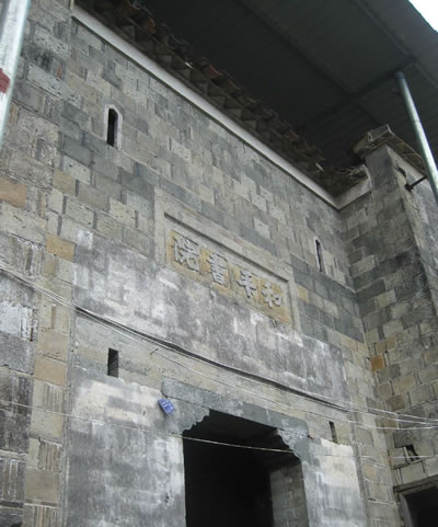 位于和平古鎮(zhèn)東門。此門李氏清晚期“一門九大夫”。建于清同治年間的李氏大夫第,為奉政大夫、知州李春江,奉直大夫、直隸州州同李奇川的宅府,俗稱“李恒盛”(寓為永遠(yuǎn)繁盛)。其門樓磚雕精致細(xì)膩,人物形態(tài)栩栩如生,美輪美奐。八字面的墻上有四幅《三國演義》里的典故:“斬顏良”、“華容道”、“長坂坡”、“博望坡”和“宋太祖千里送京娘”,還有雕刻精美的松、竹、梅、鶴、鹿、麒麟等組合的畫面。所雕的龍在下、鳳在上,是典型的清同治間產(chǎn)物,歷史時代特征非常明顯。該大夫第建筑面積1000余平方米,四合院式天井院建筑,南側(cè)有木構(gòu)二層護厝。合院內(nèi)三進廳,均三開間,穿斗式構(gòu)架,大式作法。門欞、窗欞、雀替等構(gòu)件雕飾花草圖案和人物故事。石柱礎(chǔ),均有桎。廳堂柱上原有用大毛竹片雕刻的一副意義深刻的對聯(lián):天下第一等人忠臣孝子;世間只兩樣事耕田讀書。充分體現(xiàn)了儒家傳統(tǒng)文化――忠孝與長期的耕讀文化。站在第三廳的中央可遠(yuǎn)望二進廳屋頂有一個四不象怪獸的屋脊裝飾,即古樸又神秘。