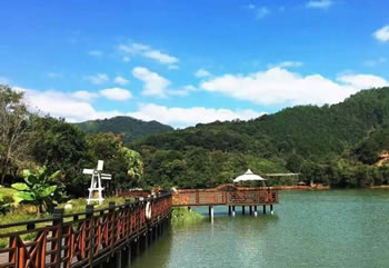 九鵬溪景區(qū)于2004年正式開(kāi)發(fā),已建成九鵬溪食府、公館茶軒、茶田觀光、水上別墅等景區(qū)服務(wù)設(shè)施,開(kāi)通往返14公里的水面游覽線路。景區(qū)圍繞“水上茶鄉(xiāng)”定位,以水體景觀為主體,融合森林旅游、人文旅游等特色,充分發(fā)揮茶山水景特色,依山筑景,傍水生趣,獨(dú)具匠心,別有情調(diào)。景區(qū)開(kāi)發(fā)現(xiàn)已初具規(guī)模,休閑度假的配套設(shè)施齊全,建筑風(fēng)格質(zhì)樸大方,與環(huán)境和諧相融,充分體現(xiàn)了木質(zhì)建筑的魅力。這里有造型典雅裝飾豪華的“九鵬食府”;也有花樣精美各具特色的“美食風(fēng)味廣場(chǎng)”地方小吃。這里有環(huán)境幽雅的茶廳茶座;也有沿溪構(gòu)筑內(nèi)部設(shè)備先進(jìn)的“漁歌唱晚”小木屋,讓人親近自然,陶冶性情,凈化心靈。此外,水木年華會(huì)所已建成使用,健全的服務(wù)設(shè)施和游客至上的經(jīng)營(yíng)理念,將為游客提供一流的服務(wù),創(chuàng)造了人與大自然和諧相處的環(huán)境,是最佳的休閑度假勝地。