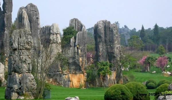 洪云山:位于鱗隱石林景區(qū)西部湖峰坡麓地帶,距鱗隱石林1.5公里,面積約0.56平方公里。上部有溶斗洼地,其中布滿著多種形態(tài)的石芽和石柱,仿佛是天然的盆景園。匯集于溶斗洼地內(nèi)的地表水流,通過灰?guī)r裂隙下滲,自其下部的洪云洞流出,清澈的泉流終年不斷。洪云洞內(nèi)的鐘乳石等化學(xué)溶積物仍在發(fā)育之中,色彩繽紛,光耀奪目,頗為迷人。"主要景點(diǎn)有:桃源活水、巖峽巖、金雞報曉、老虎撲食、玉兔望月、松鼠伏壁等30多處,十分形象逼真。