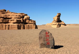 塔狀雅丹,是雅丹地貌發(fā)育壯年期的產(chǎn)物。由于風(fēng)吹、雨淋、水沖,大型雅丹體被侵蝕,沿裂隙不斷崩塌而逐漸變小,形成了如雄獅伏臥的景觀。它似乎在注視和迎接著遠(yuǎn)道而來(lái)的游客。