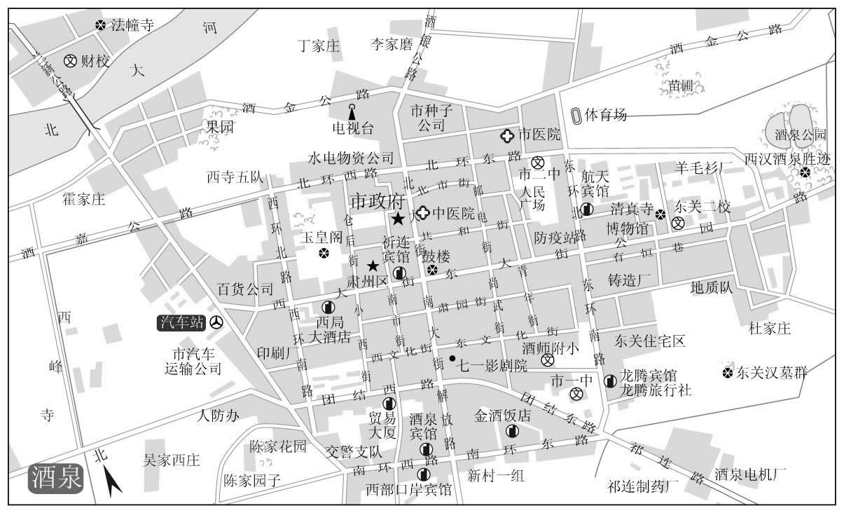 酒泉市內(nèi)主要醫(yī)療衛(wèi)生機構:酒泉市人民醫(yī)院、酒泉市疾病預防控制中心(市衛(wèi)生監(jiān)督所)、酒泉市婦幼保健院、酒泉市中醫(yī)醫(yī)院、酒泉市中心血站