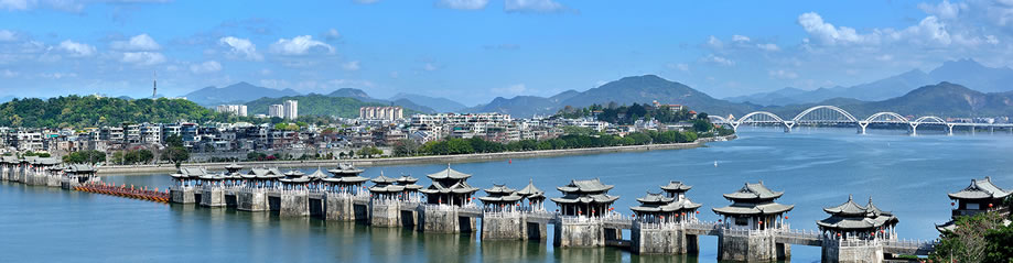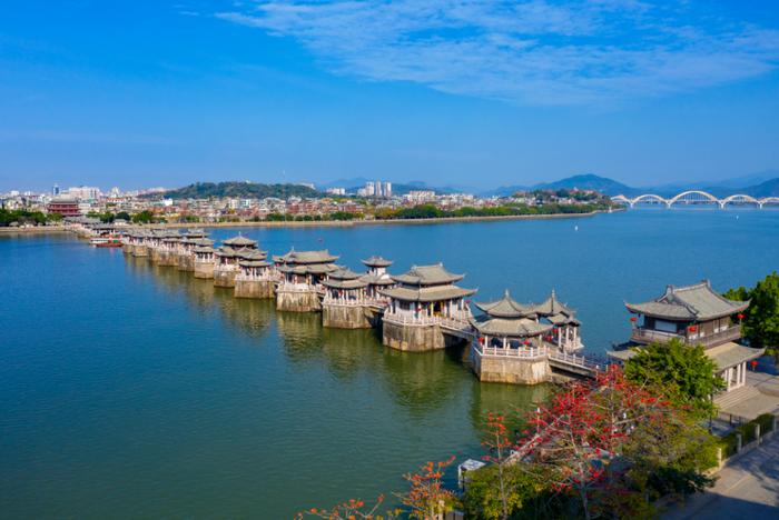 廣濟橋,即潮州廣濟橋,古稱康濟橋、丁侯橋、濟川橋,俗稱湘子橋,又稱潮州湘子橋,中國四大古橋之一,中國四大名橋之一 [16],被橋梁專家茅以升譽為“世界上最早的啟閉式橋梁”。廣濟橋位于廣東省潮州古城東門外,橫跨韓江,聯(lián)結(jié)東西兩岸,集梁橋、浮橋、拱橋于一體,為古代廣東通向閩浙交通要津,是潮州八景之一,是潮州文化的歷史地標(biāo)、全國重點文物保護單位,國家AAAA級景區(qū)。