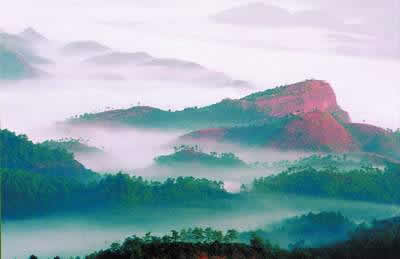 丹霞山不僅風(fēng)景奇秀,而且生物資源豐富。這里屬中亞熱帶季風(fēng)氣候,氣候溫和,雨量充足,年平均溫度20度,年降雨量1640毫米,植物種類繁多,生長(zhǎng)茂盛,主要植被為中亞熱帶常綠闊葉林。經(jīng)鑒定樹(shù)齡一百年以上的名樹(shù)古木有28株,其中三百年以上的有14株,“丹霞梧桐”更是世界上丹霞山最為著名的花卉,其品種有春蘭、寒蘭、白蘭、墨 蘭、劍蘭、蕙蘭、二葉蘭等數(shù)十種,又以白墨、綠墨、鳳尾、報(bào)歲等最為名貴。1987年,這里發(fā)現(xiàn)的一株 “達(dá)摩蘭”更是稀世珍品,當(dāng)時(shí)世界上只發(fā)現(xiàn)兩株(另一株是在臺(tái)灣達(dá)摩廟發(fā)現(xiàn),“達(dá)摩蘭”的名字即由此而來(lái))。這株丹霞達(dá)摩蘭,當(dāng)年在香港年花市出時(shí)標(biāo)價(jià)高達(dá)100萬(wàn)港元。每到花開(kāi)季節(jié),丹霞蘭滿山飄香,游人循香覓跡,別有一番情趣。丹霞山區(qū)出產(chǎn)的“白毛尖茶”則是久負(fù)盛名的特產(chǎn),是綠茶中的珍品,清代嘉慶年間曾為宮廷貢品。其茶牙粗壯,密披銀白色的毫毛,茶湯清澈黃亮,味甘醇,有一股天然的蘭花清香,為我國(guó)三大白毛名茶之首,曾在林業(yè)部“林業(yè)名優(yōu)物新博覽會(huì)”上榮獲金獎(jiǎng)。