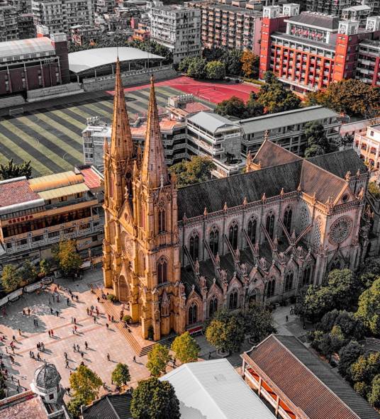石室圣心大教堂,是天主教廣州教區(qū)最大教堂,國內(nèi)現(xiàn)存最宏偉的雙尖塔哥特式建筑之一,也是全球四座全石結構哥特式教堂建筑之一(另外三座是巴黎圣母院、威斯敏斯特教堂、科隆大教堂),由于教堂的全部墻壁和柱子都是用花崗巖石砌造,所以又稱之為“石室”或“石室耶穌圣心堂”、“石室天主教堂”。是廣東省重點文物保護單位。