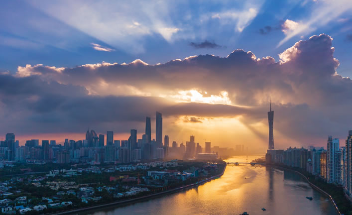 廣州市地處珠江三角洲,瀕臨南海,海洋性氣候特征顯著,海洋和大陸對廣州市氣候都有明顯的影響。廣州市各地年平均氣溫在21.5℃~22.2℃之間,雨水資源豐富,平均年降水量為1800多毫米,年降水日數(shù)在150天左右。