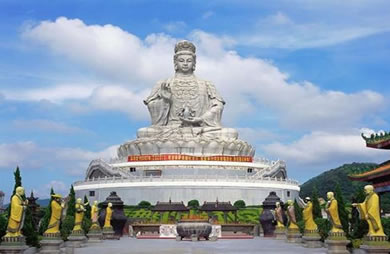 觀音像位于海拔488米的觀音山頂,是公園內(nèi)集游、行、購、食等為一體的大型游客集散地,為廣大游客和信眾到觀音山的必游之地。世界最大花崗巖石雕觀音圣像,用極具靈氣的,公園建成時,擇極具靈氣的花崗巖,靠人工雕琢,歷時三載,終請成凈高三十三米、重達(dá)三千多噸的世界最大花崗巖觀世音菩薩圣像。