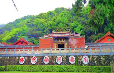 從靈光寺右側(cè)進去約0.5公里的地方,山谷中有條小溪,長年流出清徹的溪水,清涼可愛。但是,每當春雨連綿,久雨之后,泉水變赤,類似茶色,人們稱茶泉山谷叫茶坑。傳說潘了拳當年來到陰那山,上山伐木結(jié)茅修煉。他姐姐同情弟弟孤身一人,尋找而來并住下,照顧潘了拳的起居生活。