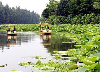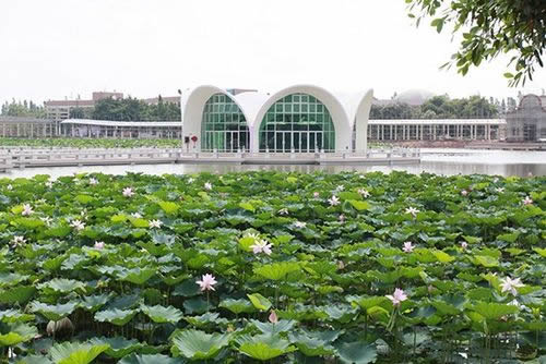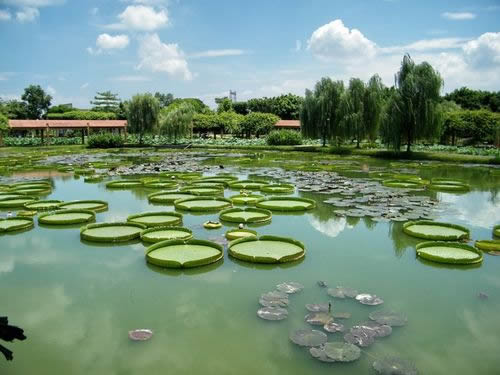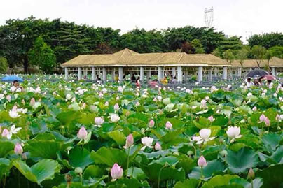 荷花園內(nèi)可觀賞到480個珍稀的荷花品種,其中有太空培育的“太空蓮”、遼寧省出土的 “古代蓮”等珍稀品種,數(shù)十個睡蓮品種,包括從臺灣引進(jìn)的四季花開的既可觀賞又可食用,同時還有較高的藥用價值的香睡蓮品種,以及各種罕有的水生植物。還有直徑達(dá)1.98米,可以承重40公斤的王蓮、以及形態(tài)萬千的數(shù)百個水生花卉品種。更種植了近100種各式各樣的奇瓜異果,更有直徑60公分,重達(dá)85公斤的巨型大南瓜、開花機(jī)率僅為十萬分之一的“并蒂蓮”奇觀,每年均數(shù)次競放荷花世界爭妍斗麗。并按個同功能劃分八大區(qū):文化廣場、中心 區(qū)、品種觀賞區(qū)、王蓮和睡蓮區(qū)、飲食娛樂區(qū)、生產(chǎn)科研育種區(qū)、籽 蓮區(qū)等組成。您可以乘車或徒步游覽景區(qū),也可以蕩舟在荷花叢中, 采摘蓮于、蓮藕,別有一番情趣。