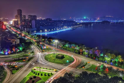 肇慶市地處廣東省中西部,是東南沿海通往西南各省的重要交通樞紐。肇慶城區(qū)的七星巖,素有“嶺南第一奇觀”的美譽;鼎湖山是國家級自然保護區(qū)。以星湖風景區(qū)為中心,沿西江、綏江溯江而上,盤龍峽、“天下第一石”、千層峰、廣寧竹海大觀、燕巖等景點次遞展開,構(gòu)成了千里旅游走廊的絢麗畫卷。