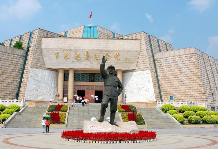 百色起義紀(jì)念園位于百色城東面的后龍山、盤龍山、迎龍山上,是在整合百色起義紀(jì)念館、紅七軍軍部舊址、紅七軍政治部舊址、百色起義紀(jì)念碑、右江民族博物館、紅軍橋、銅鼓樓、南閣亭、兩廣青年友誼園等革命歷史文化資源的基礎(chǔ)上形成的主題性公園,成立于2008年5月,是中央確定的全國12個(gè)紅色旅游重點(diǎn)景區(qū)之一“兩江紅旗,百色風(fēng)雷”景區(qū)的核心區(qū)。