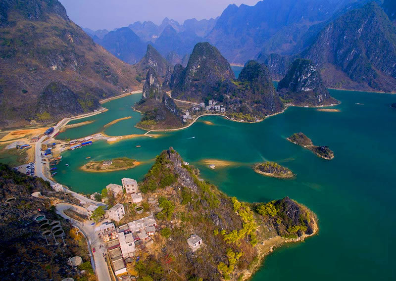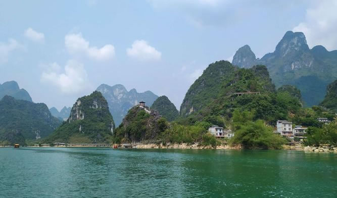 浩坤湖,位于百色市凌云縣下甲鎮(zhèn)和伶站鄉(xiāng)交界的地域,是澄碧河水系堵洞而成的湖,湖長6公里,湖寬50至1500米。豐水期湖面面積約20平方公里。 浩坤湖發(fā)源于青龍山的澄碧河是珠江源之一,澄碧河水自水源洞噴流而出,先在洞口盤根錯(cuò)節(jié)的千年古榕下聚成一彎綠瑩瑩的湖,再流穿過凌云縣城中心曲曲折折地流出城外去。澄碧河穿過泗城,流經(jīng)一個(gè)叫下甲的地方,在彩架鉆入地下,潛行5公里后在弄盤露出地面,河水流經(jīng)下甲弄盤至伶站浩坤一帶受阻而成湖,這就是浩坤湖。 浩坤湖是凌云這高山林立的地方最大的一片水面,古時(shí)叫東湖, 俗稱高山神湖。湖山秀美、岸線曲折,島渚星羅,幾十座山峰緊緊挾攜著一湖碧水,湖內(nèi)島嶼交錯(cuò),水天一色,兩岸山奇崖秀:巨龍入地,掌上明珠、情蛙對語、望子牧歸、雞犬相聞、神駝昂首、相思?jí)艨M,岸上花艷竹翠,藍(lán)天青山倒映水中,山水天渾然一體,令人陶醉,湖面寬闊,水質(zhì)清澈,自然風(fēng)光十分優(yōu)美,岸畔竹影婆娑,釣翁頻現(xiàn),花樹掩映,黃髫小兒戲水,馬兒羊羔撒歡,老牛吃著嫩草,一派溫馨和諧、天人合一景象,是美麗南方中一片難得的自然景觀。具有良好的水上觀光、度假旅游的自然地貌基礎(chǔ)。