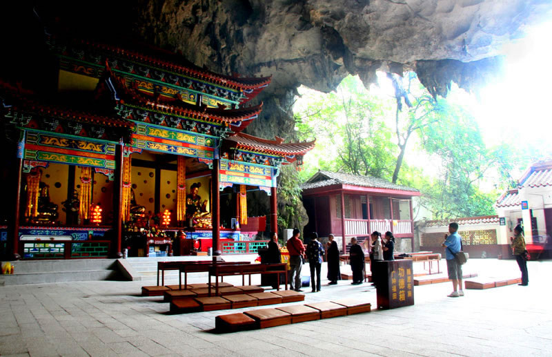 水源洞旅游景區(qū)位于凌云縣城北百花山下,距凌云縣城約1千米,也是廣西壯族自治區(qū)重點(diǎn)文物保護(hù)單位,百色市十八景之一。水源洞景區(qū)分為內(nèi)洞和外洞兩部分。洞外綠堤兩道,垂柳、古榕遍岸,飛鳥爭鳴,兩座對稱排列的石拱小橋,古樸典雅。洞內(nèi)有占地22000平方米、寬38米、高20.8米的大廳。洞門最高處的山崖絕壁上,刻有乾隆四十三年(1778)左江觀察使王玉德所題的“第一洞天”,大廳四周絕壁上刻有明、清以來文人墨客的題字、題聯(lián)、題詩80余幅,是凌云縣古石刻最集中、保護(hù)最完整的地方,展示了凌云近千年的州、府、縣建制歷史文化。