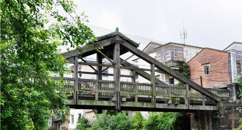 惠愛(ài)橋又名舊橋、西門(mén)橋,位于合浦縣廉州鎮(zhèn)惠愛(ài)路西門(mén)江上,宣統(tǒng)三年(1911年)建成。橋身為坤甸木當(dāng)?shù)厮追Q“三鉸拱”。橋長(zhǎng)36米,寬2.75米,臺(tái)距18.4米,橋面至橋頂高5.64米。