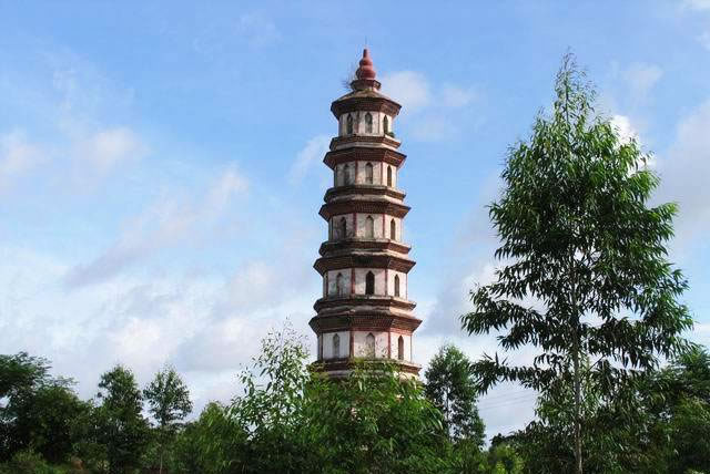 文昌塔位于合浦縣廉州鎮(zhèn)西南郊,為平面呈八邊形的仿樓閣式七層磚塔,高35米。塔基石砌,直徑10米,塔身青磚里外三層砌筑,底徑8.41米。占地面積79平方米。塔身逐層向內(nèi)收,每層高度依次有規(guī)則遞減;每層各有佛龕6個(gè),風(fēng)門(mén)2個(gè)。