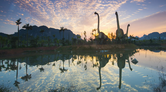 龍谷灣恐龍主題公園是國家AAAA級(jí)旅游景區(qū),位于扶綏縣上龍大道999號(hào),距南友高速公路扶綏出口3公里。占地面積3000畝,是龍谷灣旅游休閑度假區(qū)的一期工程,于2017年元旦建成開業(yè)。公園由遠(yuǎn)古呼喚、多媒體體驗(yàn)中心、動(dòng)感地帶、兒童王國、恐龍谷等板塊組成,是集科普研學(xué)、旅游觀光、游樂體驗(yàn)為一體的亞洲最大的恐龍主題公園。龍谷灣旅游休閑度假區(qū)瞄準(zhǔn)“3.5小時(shí)經(jīng)濟(jì)圈”休閑度假市場,突出恐龍文化和壯族民俗文化,規(guī)劃建設(shè)主題公園、特色小鎮(zhèn)、商業(yè)綜合體、田園綜合體、康養(yǎng)旅居城、體育旅游、智慧旅游、國際教育、民宿、汽車旅游營地等,形成龍谷灣恐龍公園、國際慢生活商業(yè)中心、錦繡八桂田園綜合體、國際酷玩休閑世界、國際共享康養(yǎng)旅居城五大區(qū)域。