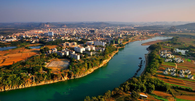 地形地貌 扶綏縣境地勢南北高,中間低,由西向東傾斜。南部和北部是高山土嶺,峰叢谷地,中部為低丘臺(tái)地,間有孤峰。巖溶地層分布很廣,約占全縣土地面積的三分之二。