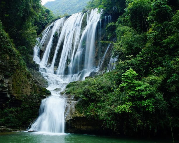 環(huán)江牛角寨瀑布景區(qū),又名鳳凰山瀑布景區(qū),牛角寨瀑布景區(qū)成功創(chuàng)建“國(guó)家3A景區(qū)”和“廣西生態(tài)旅游示范區(qū)”,是2009年環(huán)江毛南族自治縣最新發(fā)現(xiàn)的原生態(tài)旅游觀光瀑布群,景區(qū)位于環(huán)江毛南族自治縣明倫鎮(zhèn)八面村牛角屯,平均海拔700米—900米,山地相對(duì)高度較大,氣候溫暖宜人。 牛角寨瀑布群景區(qū)坐落在環(huán)江環(huán)江毛南族自治縣中部的明倫鎮(zhèn),離縣城42公里,離貴州省荔波縣小七孔景區(qū)也很近。景區(qū)占地10多平方公里,屬喀斯特地貌。景區(qū)內(nèi)叢峰疊起連綿、森林繁茂、山幽谷深、溪流潺潺,瀑布成群、潭池如境,是集峰叢、峽谷、溪流、瀑布、潭池為一體的自然生態(tài)景觀。瀑布群中最大的七仙女瀑布,寬60米高50米,銀白色的瀑布流水飄然瀉下,形似仙女在空中裙帶飄逸,雋永秀麗,被譽(yù)為"廣西的黃果樹"。景區(qū)內(nèi)有聞名區(qū)內(nèi)外的"五香"(香豬、香牛、香菇、香鴨、香粳)美食、特產(chǎn)。牛角寨瀑布群景區(qū)是康體養(yǎng)生、休閑度假、觀光游憩之圣地!