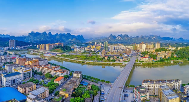 環(huán)江東鄰廣西工業(yè)名城柳州市,北與貴州旅游縣城荔波相望,距河池市政府67公里、廣西首府南寧市270公里,離“山水甲天下”的桂林市300公里。目前,貴陽至南寧高速鐵路加快推進(jìn)并于今年6月運(yùn)營(yíng)通車,途徑環(huán)江的貴州荔波至河池德勝高速公路正有序推進(jìn),“雙高”建成后將從根本上改變環(huán)江在廣西發(fā)展大局中的空間方位,助推環(huán)江更好地融入南寧、貴陽一小時(shí)經(jīng)濟(jì)圈,融入巴馬長(zhǎng)壽養(yǎng)生國(guó)際旅游經(jīng)濟(jì)圈,融入桂黔世界遺產(chǎn)大旅游經(jīng)濟(jì)圈,融入粵港澳大灣區(qū)、北部灣經(jīng)濟(jì)區(qū)。