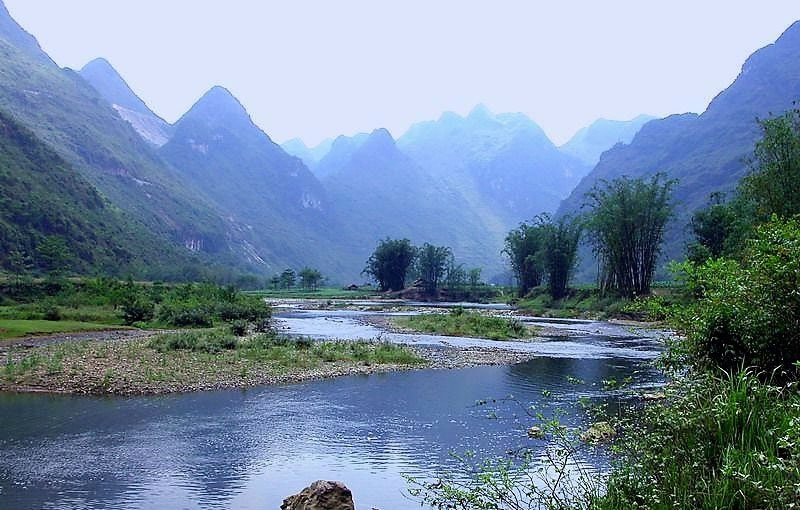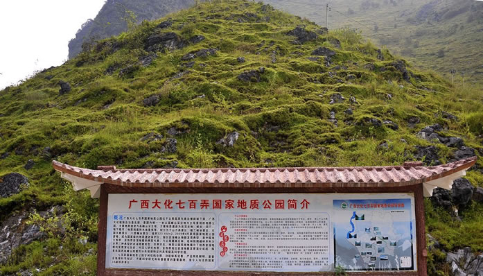 地形地貌 大化瑤族自治縣地處云貴高原余脈,都陽山脈自北向南跨過全境,地勢北高南低。北部海拔一般在500~800米,最高系板升─七百弄山區(qū),海拔一般在900~1000米,最高山峰七百弄鄉(xiāng)的弄耳山,主峰海拔1108米。南部海拔一般在150~300米?h域地貌按成因分類有巖溶(喀斯特)地貌、剝蝕侵蝕低山丘陵地貌、河谷地貌三種類型,其中以巖溶地貌為主,境內(nèi)峰巒疊嶂,洼地密布,號稱“千山萬弄”,僅七百弄鄉(xiāng)就有大小弄場1300多個,而有人煙的僅324個。
